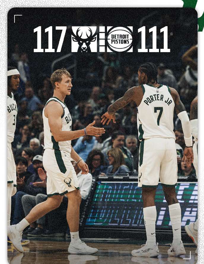 The Bucks faced the Pistons at home today, and finally defeated their opponents 117-111, winning two consecutive preseason games. It is worth mentioning that the Pistons once led by 14 points in the second quarter, but were still beaten by the Bucks in the second half and were reversed.
