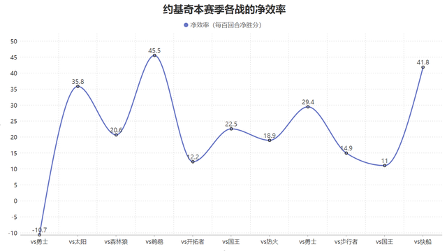 Therefore, although Jokic’s basic statistics have not reached the top of the league, his role on the field is very obvious. In the 11 games Jokic has played this season, he only played in the first game against the Warriors. The net efficiency in the game was less than 0, and the net efficiency in the rest of the games was more than 10. This means that except for the first game when Jokic was on the court, the Nuggets' net rating exceeded 10 points per 100 possessions. In this game against the Clippers, it reached 41.8 points.