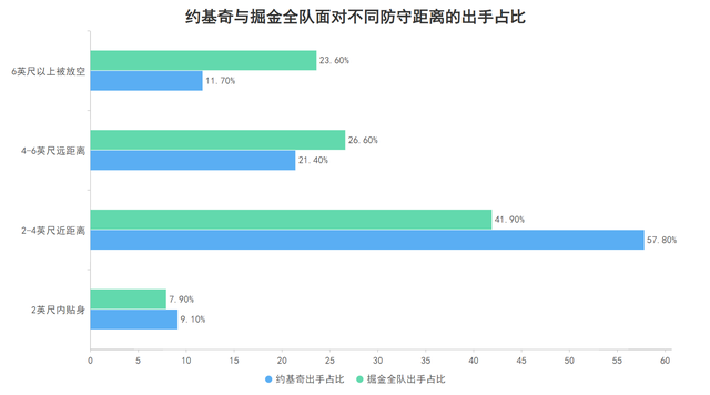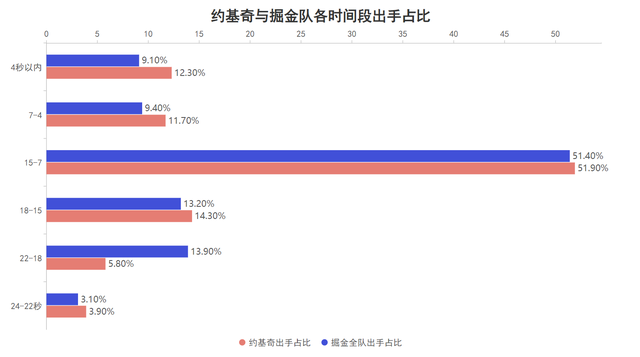 The fact that you bear the difficulties and leave them to your teammates easily can be reflected in every battle. Jokic's shots accounted for 12.3% in the last 4 seconds of 24 seconds, which means that 12.3% of his shots were It was completed when the shot time was about to end. In comparison, the Nuggets' shots in the last 4 seconds accounted for 9.1%. This can show that Jokic took on more of the ball in the team;