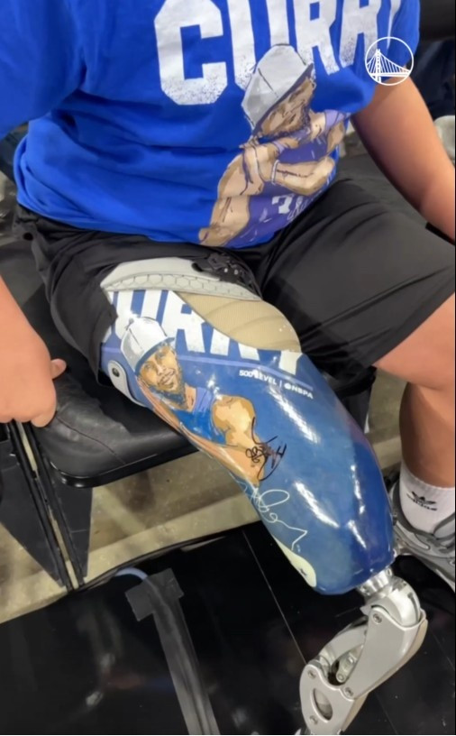 Curry signed a good night prosthetic leg for a young fan. The young fan said Curry is his favorite player.