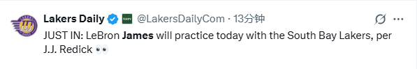 Lakers head coach Redick revealed that James will train with the South Bay Lakers (the Lakers' G League affiliate team) today; due to sciatica, James has not made his debut this season, but James has been allowed to conduct confrontation training. He is preparing for his comeback. He is expected to make his season debut against the Jazz at home on November 19 at the earliest.