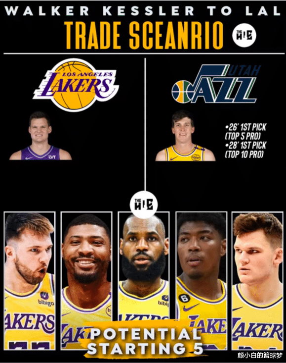 US media RE simulated a plan on the evening of October 11. This plan listed all the details. The Lakers sent Austin Reeves, a top-five protected first-rounder in 2026, a top-10 protected first-rounder in 2028, and exchanged Kessler from the Jazz. Then Kesler directly started in the Lakers, and defensive back Smart entered the starting lineup.