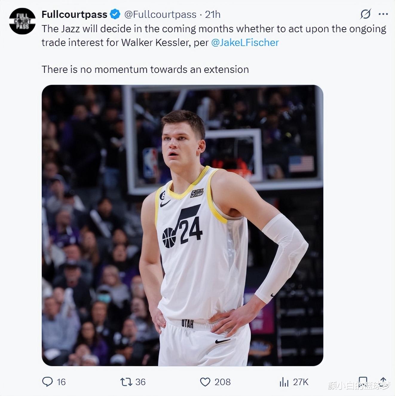 On October 11, BR reporter Jack Fisher revealed that the Jazz will decide whether to trade Kessler in the next few months. Currently, the two parties have made no progress in renewing the contract. Kessler is disappointed with the Jazz management.