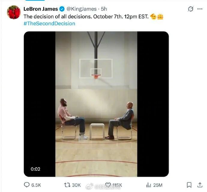 [#James decides that the second is actually an advertisement#Previous preview triggered speculation about retirement]#James decides that the second is an advertisement netizens complained that they were fooled#On October 7, Lakers superstar James released a short video trailer called "Second Decision" on social media. In the trailer, James put on the shirt when he "decided" to join the Heat on the last live broadcast, which triggered speculation from the entire network about his retirement or transfer.