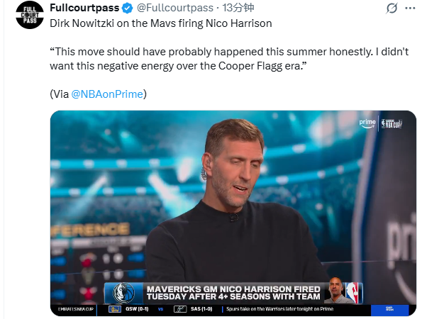 Talking about the Mavericks firing Harrison, Nowitzki said bluntly on the show: "To be honest, this is what should be done this summer! I don't want these negative energies to affect the Flagg era."