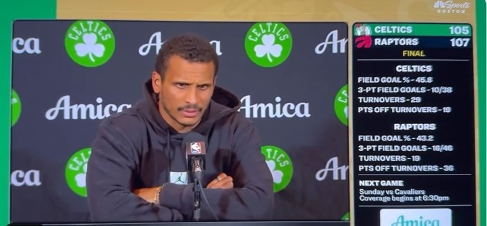 October 11th: Celtics 105-107 Raptors in preseason game. After the game, coach Mazzula was interviewed.