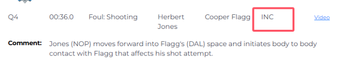The NBA official also announced the referee report of the last two minutes of the Mavericks and Pelicans. There was only one missed call. With 36 seconds left in the game, Jones violated Flagg's offensive space and came into contact with Flagg's body during defense, which affected the latter's shooting. Jones should have been called for a foul; however, after Flagg lost the ball, Gafford got the ball back and scored the ball.
