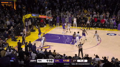 In the last 1.2 seconds, the Lakers only led the Spurs by 118-116 by 2 points. Smart made a service error and gave away the ball in vain. Olynyk stood on the baseline and sent the ball to Johnson, who was cutting in the air. This time, he cooperated The match failed, and the referee immediately whistled Smart for touching the ball out of bounds. At that time, the Lakers had no challenge; the game continued, and Olynyk continued to serve from the baseline in the last 0.4 seconds. Champany tried to make an alley-oop and was fouled by Laravia. However, Champany missed the extension free throw, and the Lakers won a thrilling victory in the end.