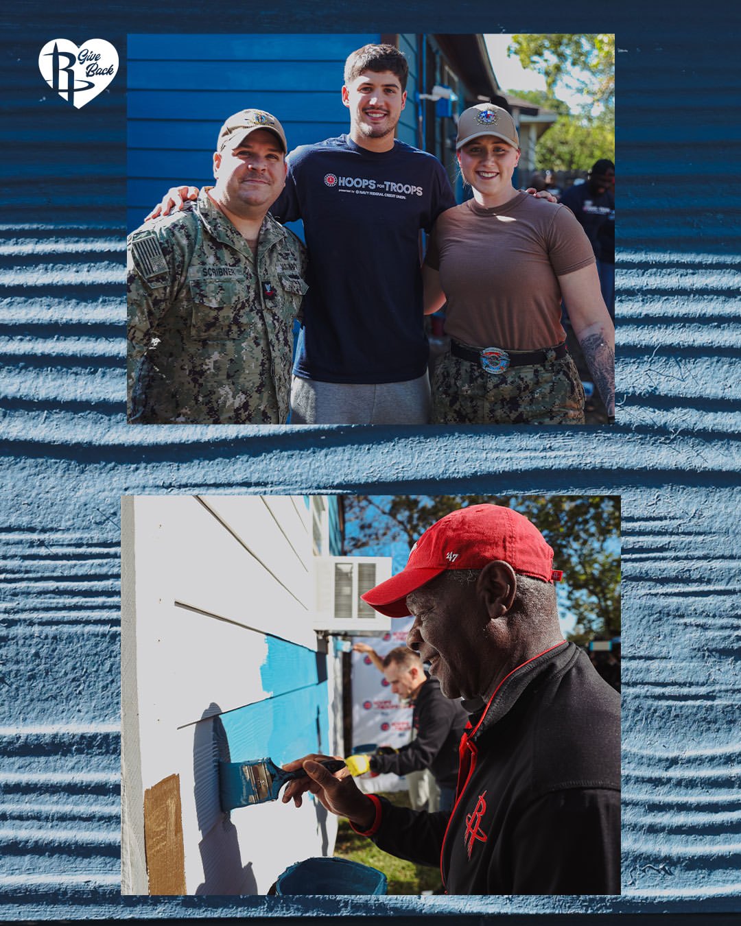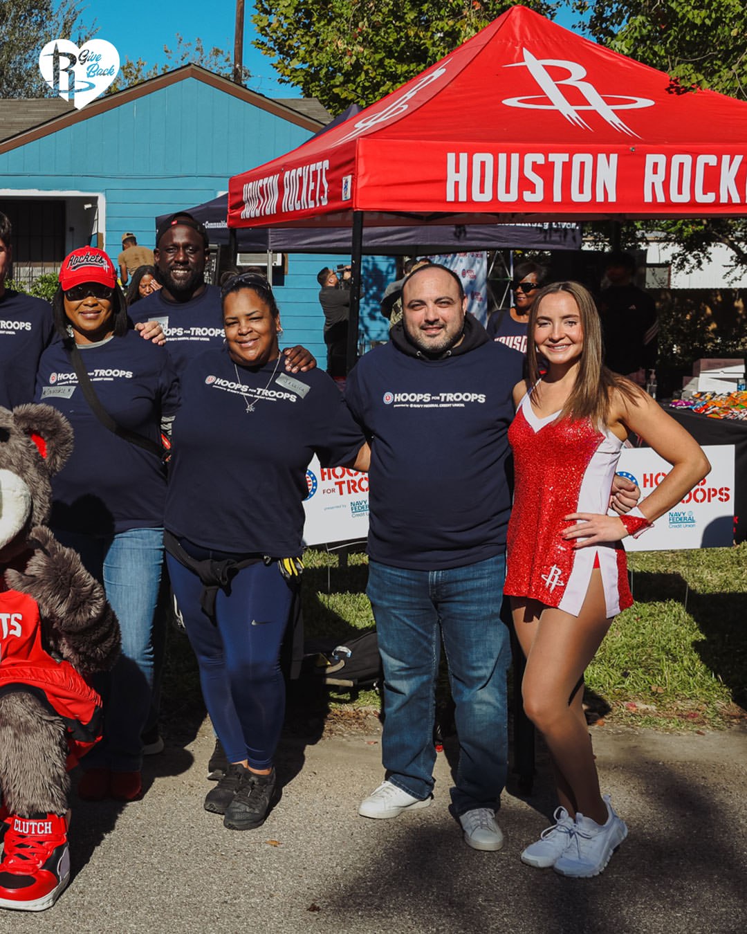 TheHoustonRocketsand@NavyFederalteamedupwithmembersoftheUnitedStatesmilitaryforourannualHoopsforTroopsCommitmenttoServiceevent.💪🇺🇸Th isyear’sjointprojectfocusedonmakingimprovementstoamilitaryveteran’shomethroughpainting,landscaping,andplentyofteamworkonandoffthecourt.🤍💙 #HoopsForTroopsl #RocketsGiveBack