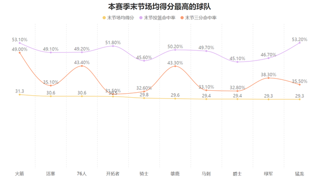 At the end of this season, the Rockets averaged 31.3 points per game, the highest in the league. The two field goal percentages were as high as 53.1% and 49%, ranking second and first in the league respectively. It is not scary to have the highest points per game. What is scary is that while scoring such a high score, the Rockets also have such a high scoring efficiency.