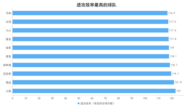 This way of winning is very unconventional: the Rockets' scoring and assist rate this season has reached the lowest among the 30 teams at only 57.5%, which means that 42.5% of the Rockets' scoring is completed without assists. , it can also be shown that the Rockets are the team that least relies on teammates for scoring this season. The multiple main players have strong independent finishing capabilities, giving everyone in the Rockets room to play. The Rockets' offensive efficiency this season, that is, points per 100 possessions, has reached 123 points, the highest among the 30 teams in the league.