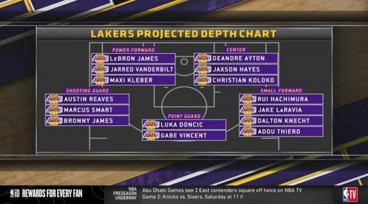 US media showed the Lakers' current 15-man roster lineup, as follows: