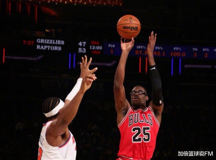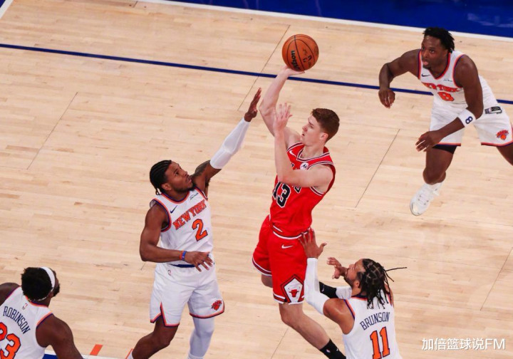 Brunson faced the defense and shot a three-pointer. Vucevic was not to be outdone, and immediately fired back with a shot from the outside. Towns scored in the penalty area, Anunoby easily scored with a counterattack dunk, and Bridges made a wide-open three-pointer. Changhong penetrated the sun and fell straight into the heart of the basket. Even though the Bulls' offensive efficiency is already high, with the team's three-point shooting percentage remaining above 40%, the Knicks are even more exaggerated, with their outside shooting percentage once exceeding 60%. They scored another 37 points in the third quarter. After three quarters, the Knicks led the Bulls by 16 points, 105-89.
