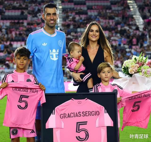 Busquets, his wife Elena, and three sons Enzo, Lebi and Romero attended the retirement ceremony together. Elena held her youngest son, while Busquets held her two sons.