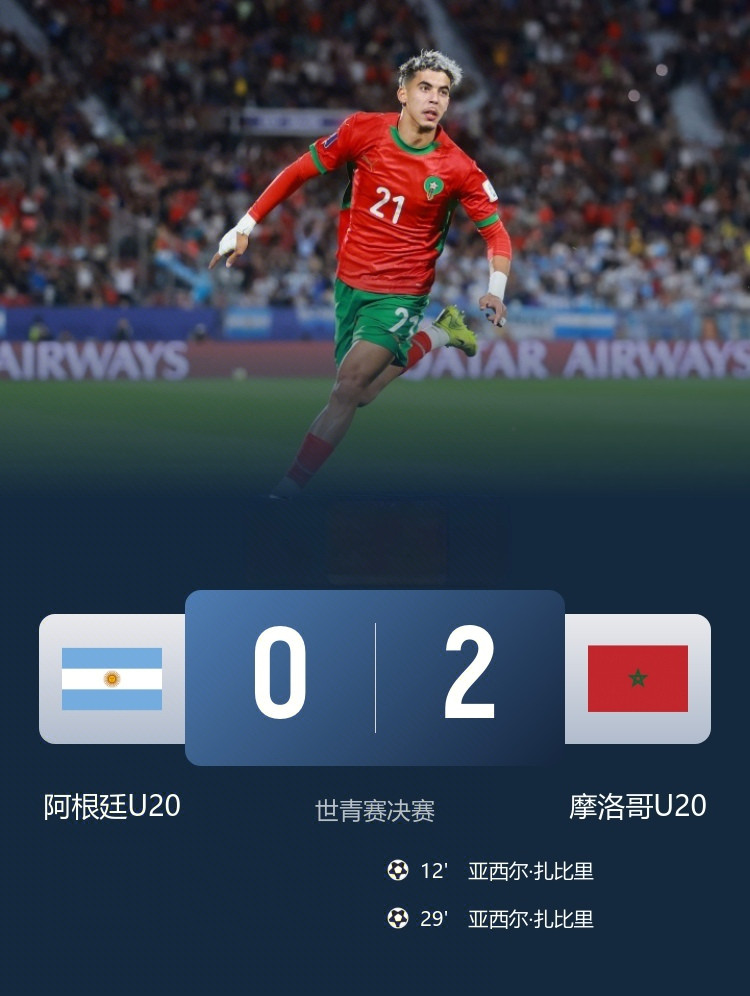 Coming to the knockout rounds, Morocco used a very convincing performance to win against strong teams in a row. It first eliminated the Korean men's football team, a traditional Asian team, and then defeated the North American representative and the favorite to win the United States 3-1 in the quarter-finals. In the semi-finals, they faced another strong team, the French men's football team, and had the last laugh through penalty kicks. In the final, they will face Argentina, the six-time champion with the most wins in the history of the World Youth Championship.