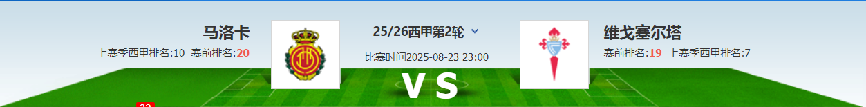 This game is a match in the second round of La Liga, with Mallorca at home facing Celta. Mallorca lost to Barcelona 0-3 in the first round of the new season; Celta lost to Getafe 0-2 in the first round.