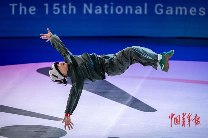 Liu Qingyi successfully defended her title in the break dancing women s group of the National Games