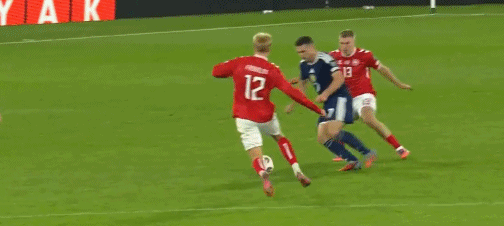 In the 65th minute, the situation on the field suddenly changed. Danish defender Rasmus Christensen fouled McGinn and received a second yellow card and was sent off. Scotland had the huge advantage of playing one more player.