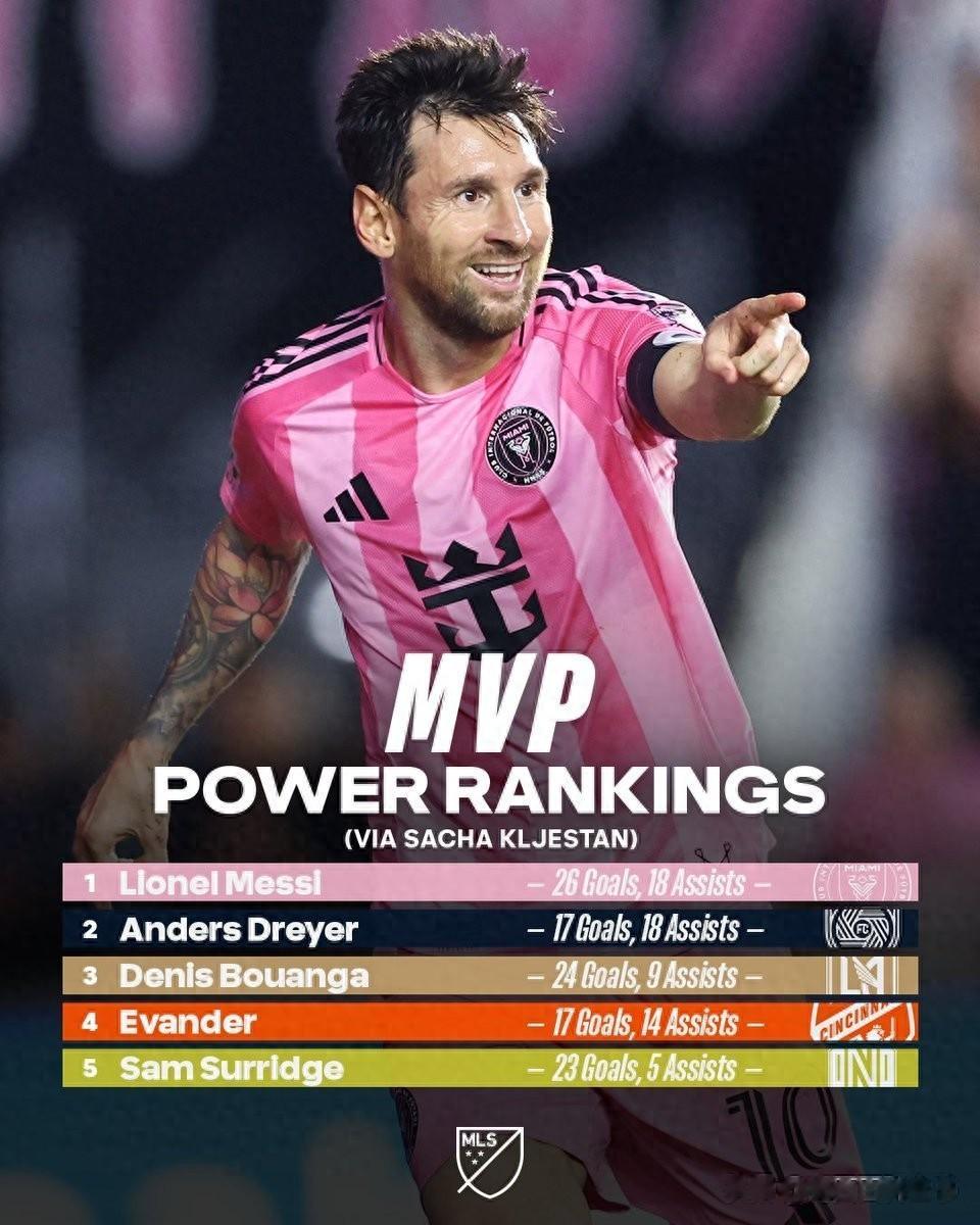 Messi is currently the biggest favorite for the regular season MVP of the American Major League and the number one official certified list, and he is basically locked in the MVP. However, given that Messi has been deprived of several best-of-the-round awards by American reporters using their voting rights, if the American judges cause trouble again, it is not ruled out that Messi will miss the opportunity to defend his title. But looking at the objective facts, Messi is the MVP.