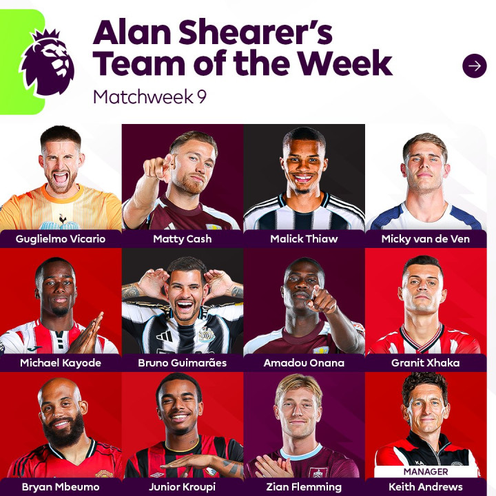 Shearer selects the best team for the 9th round of the Premier League: Mbemo and Xhaka lead, Van der Ven is included