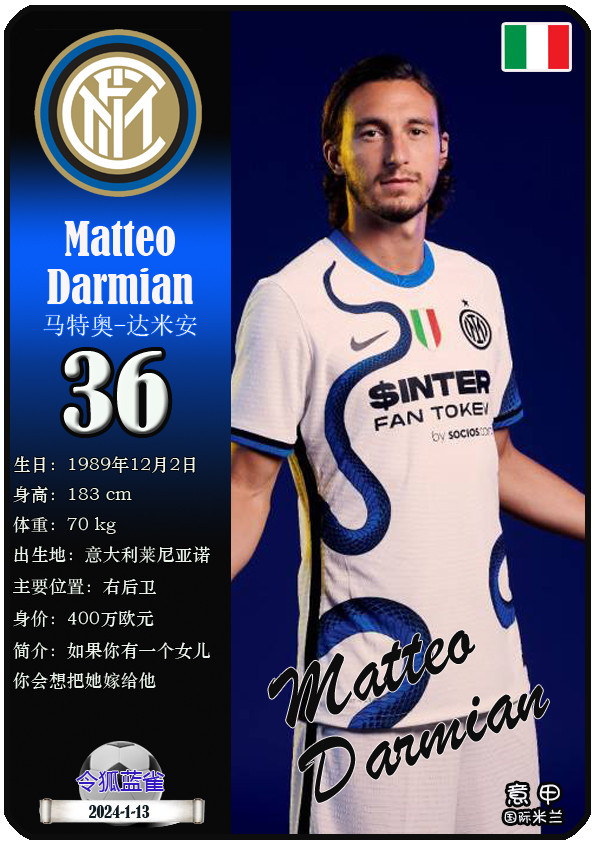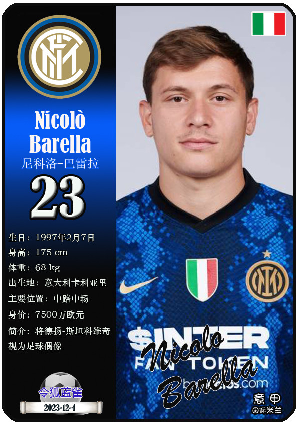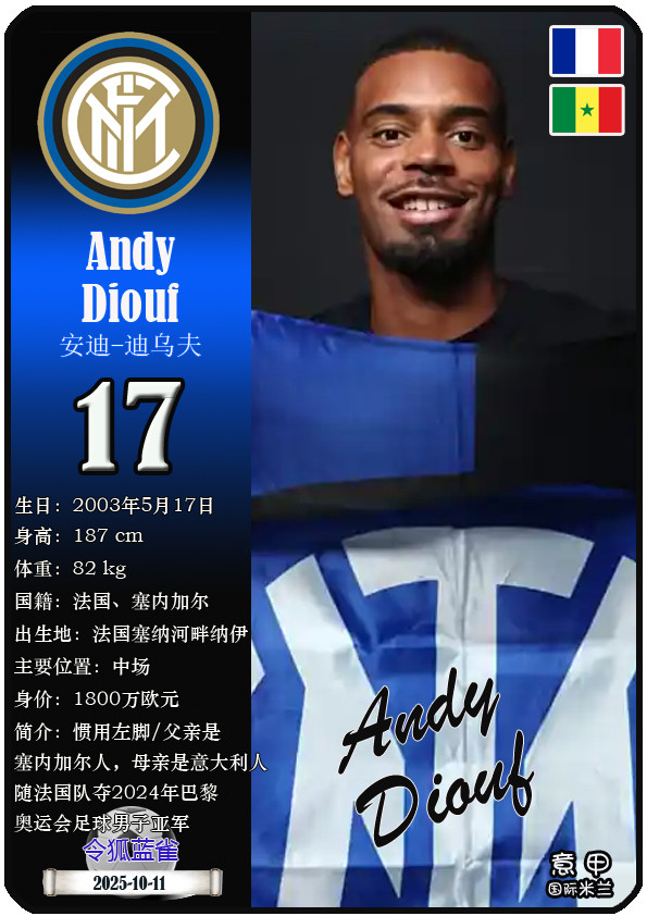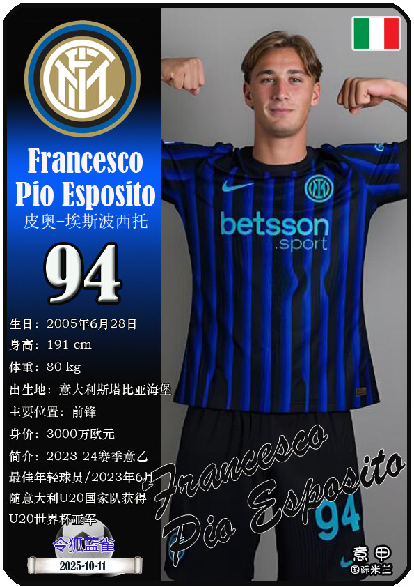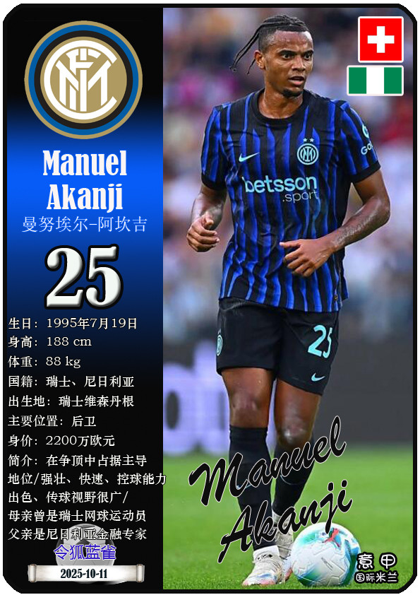 QQ-Sports > Football > Star Card (Serie A): List of 25 players of Inter Milan Football Club (25/26 season)