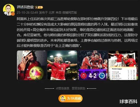 After winning against Brighton at home, Manchester United's winning streak in the Premier League reached 3 games, and their ranking has temporarily risen to fourth in the Premier League. For Amorim, his transformation of Manchester United has begun to bear fruit. Four major new players were introduced in Xia Chuang and became the team's main ministers during the three-game winning streak. Next, Manchester United will visit Forest and Tottenham in the league. Only after these two games can we judge whether Manchester United is finally "on the right path."