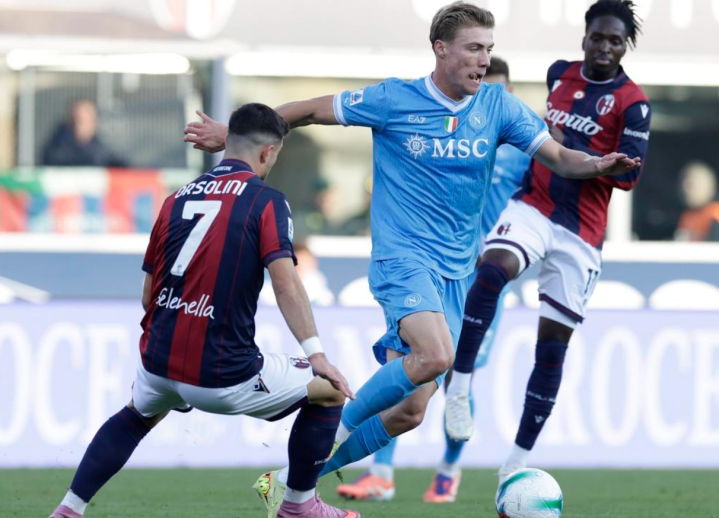 After the game started, both sides played more cautiously, making it difficult to create good opportunities. In the 19th minute, Elmas' shot was blocked. Three minutes later, Lukumi's header went high. In the 32nd minute, Jonathan Rowe's long shot was saved by the goalkeeper. This was the most threatening shot in the first half. At halftime, the score was still 0-0! Naples had 58% of the ball in the first half, had only 3 shots, 1 shot on target, and failed to score. Bologna shot 4 times in the first half and failed to score.