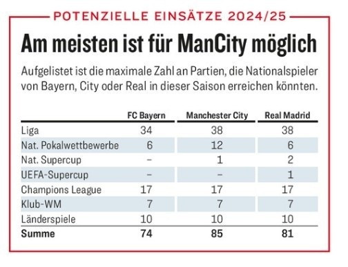 Last season, Manchester City, Real Madrid and Bayern did not reach the limit of games, but overload operation has become a daily routine for the giants.