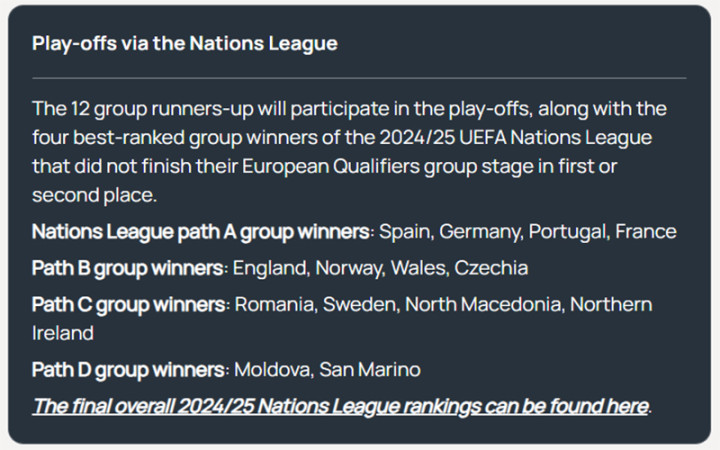 In addition to Romania, Sweden and Northern Ireland, which have locked in the European play-offs through the UEFA Nations League, there are also Albania in Group K and the Czech Republic in Group L. Because they have locked in the second place in the group, five teams have determined in advance that they need to participate in the play-offs.